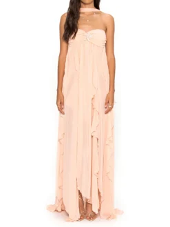 Solid color, ruched bust, decorative stars, halter neck and backless, floor length, irregular ruffled hem design, cocktail party dress, easy to show your charming curves, comfortable for you all day long.